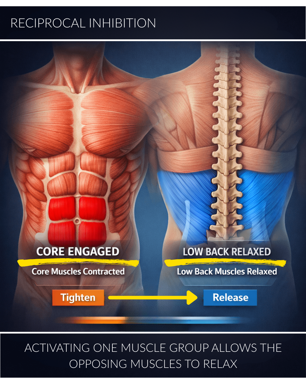 AbGlo is built on a well-established exercise science principle where engaging one muscle group allows the opposing muscles to relax. Known as reciprocal inhibition, this principle supports both immediate back relief and long-term posture improvement.